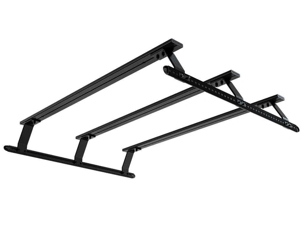 A set of Pickup Bed Load Bars used to transport gear over the bed of your Ram 1500 Crew Cab. This low profile solution includes 6 Pickup Roll Top Leg Mounts| 3 1575mm Load Bars| 1 set of Load Bed Tracks and fitting instructions. The Load Bars are mounted via Pickup Roll Top Load Mounts that bolt directly onto a set of Load Bed Tracks. Allows for gear to be mounted above the pickup’s load bed. The load bed retains its load-carrying ability| while the drop down door functions as usual. Uses the same strong| corrosion-free aluminum slats found in Front Runner Racks. The sliding nut t-slots allow for quick fitting and removal of accessories and equipment on both the top and bottom of the slats. Made from stainless steel and a durable| weather-resistant black powder coated aluminum. Includes all hardware| components and the installation guide needed to fit Load Bars on a vehicle. Note: The load per Load Bars must not exceed 55lbs or 25kg| and ensure the load is distributed evenly. For larger loads| additional Load Bars may be needed| please contact Customer Service for any enquiries.
