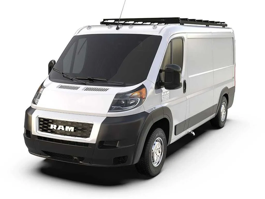KVRP004T - RAM Pro Master 2500 (136” WB/Low Roof) (2014-Current) Slimpro Roof Rack Kit - by Front Runner Consisting of:3x FAVF002 - FPCR Foot Set - by Front Runner1x RRAC207 - Van Rack Joiner Kit2x RRAC208 - Van Rack Side Profile End Caps4x RRNS1475 - Narrow Slat / 1475mm (Pair)1x SPVT002 - Van Rack Side Profile / 1358mm1x SPVT003 - Van Rack Side Profile / 1560mm1x WDST013 - Wind Deflector Van Rack 30mm Lip Material Used:Black epoxy powder - coated T6 aluminiumHigh strength steel Assembled Rack Kit Dimensions:2974mm (117.1'') L x 1565mm (61.6'') W x 127mm (5'') H Approximate Installed Weight: 31.49kg (69.42lbs) RAM Pro Master Van Rack Kit heights are adjustable from 80mm (Z bracket inverted) to 130mm (Z bracket standard mounting) all measurements are taken from bottom of roof ditch to top of the rack slat. The slat T slots and side profiles take standard M8 hex bolts top and bottom. Shipping Dimensions:Width: 300mm (12'')Length: 1805mm (71'')Height: 190mm (7'')Shipping Weight:Weight: 36.35kg (80lbs)