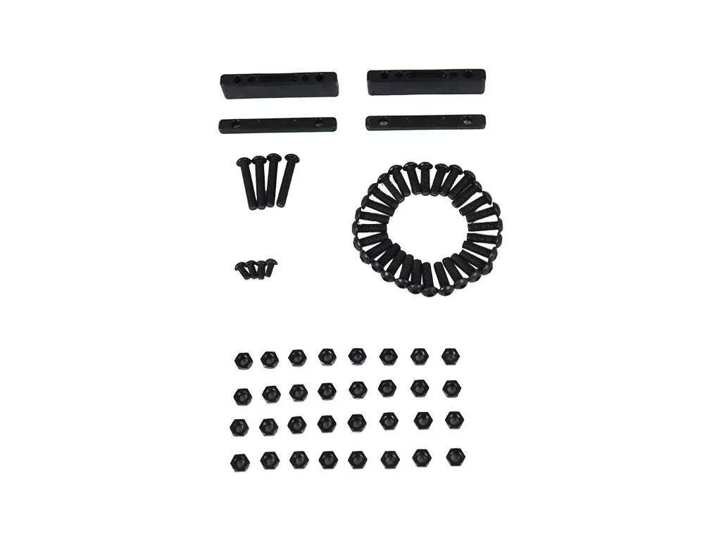 Consists of: 32x M8 nyloc nuts4x M6x16 dome head bolts28x M8x25 dome head bolts4x M8x45 dome head bolts2x Aluminium rack joiners (thin)2x Aluminium rack joiners (thick)