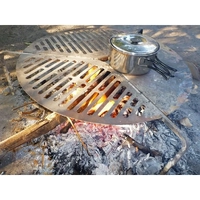 This ingenious| stainless steel cooking grate| stores over your spare wheel and takes up virtually no space. Laser cut steel grill on aluminum legs. Grill and griddle sections for campfire cooking options. Hooks over a spare wheel (secure with LADD007| STRA019 or wheel cover - not included). Fits 29” to 37” tyres (740mm to 890mm). Please Note: This Spare Tire Mount Braai/BBQ Grate is designed to be used for cooking purposes over coals and not used over high flames.