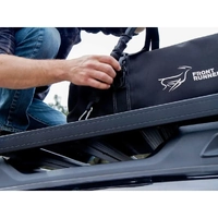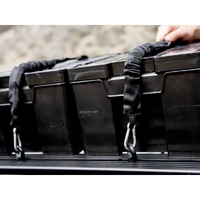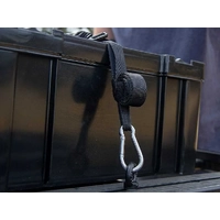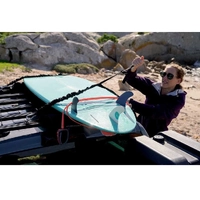 Cinch down loads simply and effectively so you don't have to worry about gear rattling loose on bumpy roads. Adjustable from 22” (560mm) to 63” (1524mm) and with an additional 8” (203mm) when fully stretched.  Won’t damage your expensive gear like surfboards through over tightening. Stratchits absorb tension like a stretchy ratchet strap. Quick and efficient. Simply secure the ends and hand tighten the strap. Fastens to| and around| just about anything. Perfect for Front Runner Racks and accessories| but work with all roof rack systems. Many uses! Secure: SBOX031| SBOX001 and other cases (Pelican| Zargas| Alu-box| etc.) to any roof rack. Secure: Surfboards| SUP| bicycles| firewood| chairs| etc. For shorter length STRA037 can be used. Keep your rack clean and organized with the cinching hook and loop strap that neatly stows away excess strap length. Sold in pairs.   HOW TO USE:Hook to the Front Runner Roof Rack RRAC012 or RRAC025 or loop around the slats or side profiles and fasten the Stratchit to itself.You can even remove the carabiner and loop the Stratchit through itself - to fasten around any roof rack rail| railing| pole| bumper| tire carrier.... etc.WARNINGS:Please read and follow all these warnings carefully -- failure to do so could result in cargo damage and could cause injury.Do not over tighten. Use only hand leverage.Never stand in the direct path of the Stratchit when tensioning to prevent the risk of injury should the strap become detached.Loads settle. Check Stratchit after first 10 miles of driving and each 50 miles thereafter.User to evaluate working load and requirements. DO NOT use to support human weight under any circumstance.Check the Stratchit regularly for signs of deterioration or damage.To ensure longevity| please remove the Stratchit from the sun and weather elements when not in use.Make sure that the points of attachment to the vehicle or trailer are of sufficient strength to withstand the maximum loading that will be produced during use.Take additional care if securing large objects that may be subject to aerodynamic lifting forces caused by bumps. Always use the appropriate number of straps and drive at reduced speeds to minimize the effects of these forces.