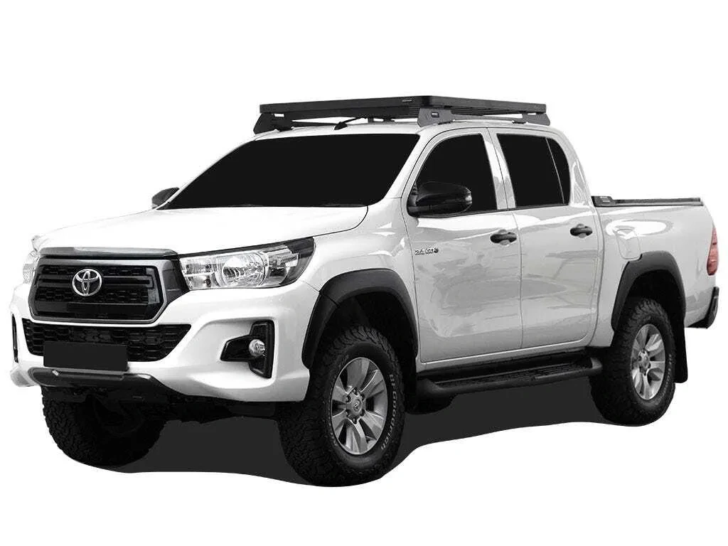 This 1358mm/53.5'' long full-size Slimline II cargo roof rack kit contains the Slimline II Tray| Wind Deflector and 2 Foot Rails to mount the Slimline II Tray to your Toyota Hilux Revo Double Cab. Drilling into the vehicles roof is required to insert mounting hardware| a template is provided for hole placement. All Front Runner Rack Kits contain installation instructions as well as all the components needed to mount the Slimline II Tray to your vehicle. The vehicle specific foot rails have openings for storing compatible gear under the rack such as Front Runner tables.These Foot Rails contain 1 opening to access a Front Runner under rack mount table (1 smaller TBRA018 or 1 larger TBRA017).All Front Runner Racks are backed by a Limited Lifetime Warranty*For further information on installation| please see the fitment instructions in the INSTALL tab.