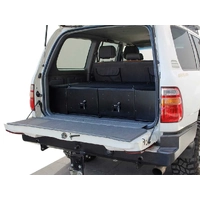 Consists of:1 x Drawer base unit (SSDR005)1 x Toyota Land Cruiser 100 Drawer Deck Completion Set (SSDS105)1 x Wing Set (SSWS003)2 x Push to Close Latch with 2 keys per lock3 x Accessory channels6 x Eye Nuts for accessory channelsInstallation Hardware includes 4 turnbuckles to secure unit to vehicleFitting instructionsMaterials used:Black powder coated steel - Drawer Bins and Frame Nylon Carpet Laminated Plywood - Top Deck and Deck SetProduct Dimensions:881mm (34.7) L x 1535mm (60.4) W x 334mm (13.2) HInternal Drawer Dimensions:817mm (32.2) L x 386mm (15.2) W x 213mm (8.4) HWeight:74.84kg (165lbs)Load Rating:113Kg (250lbs) per Drawer