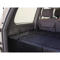 This drawer kit has 2 lockable drawers| 2 keys per lock| 3 tie down rails| 6 tie down rings| deck completion set| face completion set| brackets| all necessary installation hardware| and detailed fitment instructions. Features two equally sized drawers for all storage needs. 113kg / 250 lb per drawer load carrying capacity. High-strength bearing slides allows each drawer to extend nearly 100% from the anchored base. Provide peace of mind and security by locking away important travel items such as computers| smart phones and camera gear. The flat deck incorporates three cargo attachment channels and 6 SSCA047. Customize your own storage configurations. Stack and secure luggage| SBOX008| SBOX001| aluminum boxes and other storage containers to the top deck using STRA034 or other straps. The deck above the drawers can also be used to mount Front Runner Cargo/Fridge Slides. The side decks are easily removable creating storage space between the drawers and vehicle for a variety of items such as tools| jumper cables| tow ropes| diving snorkels| masks| fins| kindling| barbeque skewers| etc. To create a removable box option| just insert a SBOX001. Designed to fit inside Front Runner drawers| the SBOX001 can be used to further organize and move gear in and out of a vehicle. To create compartments within the drawers| add the optional steel SSCA050. Helps organize and stop excessive movement of gear and supplies. Sold in pairs| these drawers can accommodate up to 4 dividers per drawer. The deck is covered with a durable| UV resistant nylon pile black carpet detailed to compliment the vehicle’s interior contours. The nylon carpet surface creates resiliency for securing cargo while insulating against noise and vibration. Finished with the same durable black powder coating as Front Runner Roof Racks and other Front Runner products. This drawer kit can be easily installed in minutes by attaching the supplied carabiners and turnbuckles to the vehicle’s existing mounting points and the drawer mounting brackets. Removing the drawers is just as easy. All Front Runner Storage Systems are backed by a 2 year warranty.*Please Note: Cub Packs and Drawer Dividers are not included when purchasing this Drawer System and are sold separately.