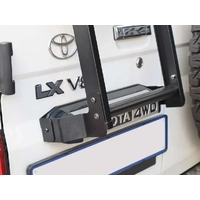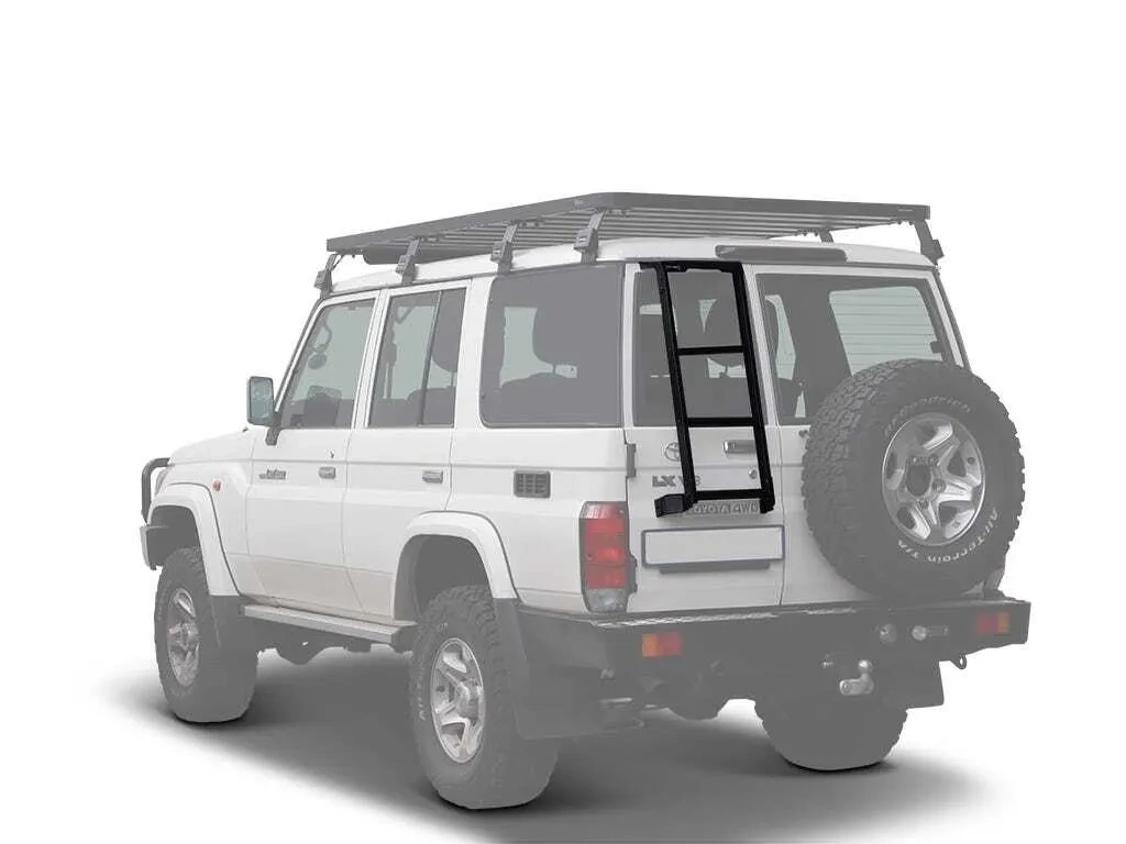 A rear mounted| three (3) rung ladder. Manufactured from steel and aluminium. Black powder coated in the same resistant coating as the Front Runner rack. Secures onto the rear door and existing points on the vehicle with no modification required. Supplied with installation hardware and fitting instructions.
