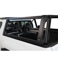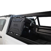 This Pro Cargo System bracket secures two (2) Wolf Pack Pro SBOX031's (sold separately) to the side of the Pro Bed System and Pro Bed Rack Kit. The SBOX031 is side-mounted| allowing quick and easy access to all your adventure gear while keeping it safe from the elements. The brackets are adjustable from 1415mm(55.7'') - 1555mm(61.2''). Made of high-strength steel and sealed with the same durable| weather-resistant powder coating as the Front Runner Racks. The top and bottom latches are lockable with a RRAC134(sold separately)| preventing unwanted access. These brackets are suitable for Wolf Pack Pro SBOX031's when when fitted with the Wolf Pack Pro Hi-Lid SBOX062. No drilling is required for the installation of these brackets. Note: This Twin Wolf Pack Pro Cargo System Bracket is not compatible with the PBFR001S or the PBFR001T.