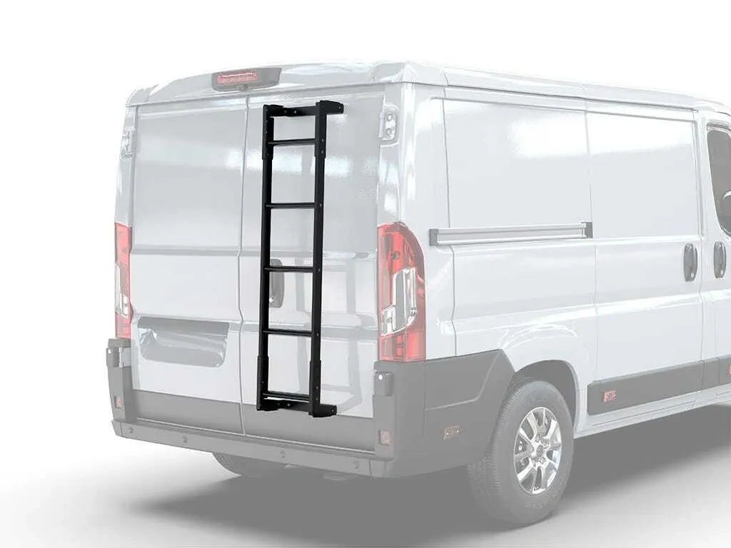 This ladder bolts to the body or to the rear barn doors of vans or utility vehicles. Surface required to secure the ladder to the vehicle is 770mm - 1480mm / 30.3'' - 58''. The ladder has 5 steps. Length from the bottom step to the top step is 1160mm / 45.7'' Made with off-road tough black powder-coated high-strength steel and aluminum for maximum durability and strength. Fitment guide and installation hardware included.