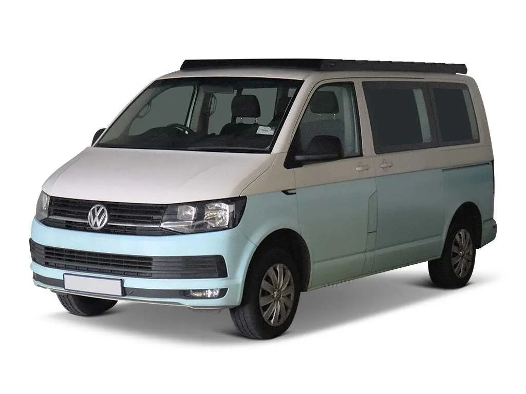 KSVT002T - Volkswagen T5/T6/T6.1 Transporter SWB (2003-2024) Slimsport Rack Kit Consisting of:1x KSVT001 - Volkswagen T5/T6/T6.1 Transporter Slimsport Tray1x RRAC293 - Volkswagen T5/T6/T6.1 SWB Slimsport Rack Wind Fairing1x RRAC971 - Protection Strip Material Used:Black epoxy powder - coated T6 aluminiumHigh strength steel Assembled Rack Kit Dimensions:2654mm (104.5“) L x 1343mm (52.9“) W x 153mm (6“) H Approximate Installed Weight: 40.11kg (88.43lbs) The t-slots on the tops and bottoms of the slats accommodate standard 8mm bolts. To determine the approximate height from your vehicle’s roof to the top of your Slimsport Rack add 60mm-70mm (2.4''-2.8'') to the highest point of your roof. Shipping Dimensions:Width: 3250mm (128'')Length: 1700mm (67'')Height: 230mm (9'') Shipping Weight:Weight: 42kg (92lbs)