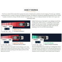 The HIKEIT X5 works just like the 'Sport' button found in many cars by cutting down the amount of pedal travel required to achieve 'Throttle Wide Open' which will allow you to access the engine's full potential. The HIKEIT X5 is pre-programmed with 4 adjustable mode maps which are finely tuned for your vehicle. Each function will alter the throttle signal in a different way which can be set depending on your preference.