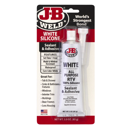 • J-B Weld White Silicone Sealant & Adhesive is a general purpose Sealant Adhesive RTV (Room Temperature Vulcanized) Silicone designed for use in household or mechanical assembly applications. Upon curing| which occurs when the product is exposed to the moisture in air| the silicone forms a tough| waterproof| mildew and mold resistant seal on most surfaces. It will not shrink or crack| resists weathering| is sensor safe and is great for many household and automotive applications.