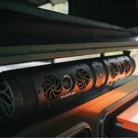 Experience the power of the KickAss 12V Soundbar with its 300W peak output. Featuring 8 marine-grade speakers - 2 tweeters| 4 mid-range speakers| and 2 active subwoofers - it delivers high-fidelity sound. Upgrade to rich| powerful audio that will be the envy of all your mates. Extremely Durable Immersive Audio IP66 Waterproof| Dirtproof & Dustproof RGB LED Lightshow Easy Controls Description KickAss 12V Soundbar Feature Overview Unmatched Durability & Protection Built to party| this 12V Canopy Soundbar is designed for the adventurous. It is certified IP66 waterproof| dirtproof| and dustproof| making it resistant to the harshest of conditions. Whether you encounter rain| dust| or mud| the KickAss sound bar will keep playing your favourite bangers to keep the party going. Premium Immersive Audio Performance Feel the power of KickAss sound with a booming 300W peak output. Our 8 marine-grade speakers – including 2 crisp tweeters| high-frequency drivers| 4 robust mid-range speakers| and 2 booming passive subwoofers – deliver a high-fidelity| immersive audio experience. Say goodbye to your small portable speaker and hello to rich| powerful sound that will be the envy of all your mates. Connectivity Options Rock out your way with multiple connectivity options: • Next-Gen Bluetooth 5.0: Enjoy a seamless| long-range connection with your smartphone| 12V TV| 12V Projector or other compatible BT devices| ensuring uninterrupted jams. • Aux In Port: Are you a gamer? An upcoming DJ? Or just love movies? Plug and play your favourite devices directly into the soundbar. • 12V Auxiliary Power Out Cable: Hook up effortlessly to your external 12V power supply| keeping your soundbar and other gadgets running smoothly. Need to power additional gear? The included 12V SAE connector power cable has you covered| supplying power at 12V/3A for low-voltage accessories like camping LED light strips. Epic RGB LED Light Show Transform any setting with a dazzling multi-colour LED display. Four backlit speakers and a 160-lumen rear-facing LED light bar boast seven mesmerising modes: Bright White| Medium Bright White| Red| Green| Blue| Purple| and Breathing Mode. Create the perfect vibe for any adventure| from wild campfire parties to serene stargazing nights. Intuitive Controls & Versatile Functionality Take charge of your soundbar effortlessly! The simple control panel and remote control have buttons for everything—power| mode selection (Bluetooth/Aux In)| volume| track skipping| lighting effects| and Bluetooth pairing. Plus| there's a built-in mic so you can answer calls hands-free on the job site or on the beach| keeping you connected wherever the party takes you. Immersive True Wireless Stereo with KickAss Cast Take your audio game to the next level by pairing two KickAss 12V Bluetooth Sound Bars for true stereo sound. Double the speakers| double the party! Get your friends to grab a KickAss Sound Bar too| and you can easily sync them for an even bigger blast. Versatile Multiple Mounting Options Setting up your soundbar is a breeze with versatile mounting brackets and built-in threaded mounting holes. Easily mount it on your canopy or roof rack and customise your setup to fit any adventure. Whether you're cruising down the road| chilling at the beach| or exploring deep in the bush| your soundbar is ready to rock! Specifications BLUETOOTH COMPLIANCE Bluetooth V5.0 BLUETOOTH FREQUENCY BAND 2.402~2.480Hz ISM Spectrum BLUETOOTH RANGE Up to 20m TWEETER (2x) 15 Watts RMS WOOFER (2x) 40 Watts RMS MID-RANGE SPEAKERS (4x) 15 Watts RMS AUDIO OUTPUT POWER 300 Watts Peak INPUT VOLTAGE 12V/10A (requires connection to external DC battery for Power) USB A OUTPUT 5V/1A WATER PROOF IP66 PRODUCT DIMENSIONS 685mm x 115mm (without mount) / 705mm x 140mm (with mount| legs facing in) / 750mm x 140mm (with mount| legs facing out)