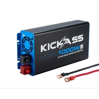 The KickAss 12V to 240V Pure Sine Wave 1000W Inverter is perfect for powering low-power devices like blenders| power tools| laptops| phones| tablets| cameras| drones| microwaves| and CPAP machines| providing clean and stable energy for all your needs. 1000W Continuous Power Power All Your AC Essentials Pure Sine Wave = Clean| Reliable Power Smart Cooling System Charge USB Devices Directly From Your Inverter Description KickAss Features: • 1000W Continuous Output • Pure Sine Wave • 94% Maximum Efficiency • Multi-level Protection • Surge Power: 2000W in 2 Seconds • Intelligent Fan • Integrated Charging Port • Multiple Mounting Options • Optional Remote Control Display 1000W Continuous Output Seamlessly convert 12V DC power from your battery into 240V AC power to run everyday household appliances. Your next camping trip will be even better with essentials like a coffee machine or electric BBQ. Pure Sine Wave This inverter produces a clean and stable pure sine wave that replicates AC power from a home wall socket. It's safe for sensitive electronics like laptops| Starlink| and CPAP machines| while also reducing electromagnetic interference and extending equipment life. It runs so quietly you'll barely hear it. 94% Maximum Efficiency Designed for high efficiency| the inverter converts power at up to 94% efficiency| minimising energy waste and making the most of your battery’s capacity. Multi-level Protection Advanced safety features protect you| your inverter| and your devices. The system continuously monitors input and output| automatically triggering protection modes in unsafe conditions. Protection includes over-voltage| overload| overcurrent| short circuit| and reverse polarity safeguards. Surge Power: 2000W in 2 Seconds With a peak surge capacity of 2000W for up to 2 seconds| the inverter is ideal for devices with a high inrush current such as power tool chargers| microwaves| and induction cooktops. Intelligent Fan The dynamic| intelligent fan system adjusts automatically to keep the inverter cool| ensuring maximum efficiency and reliable performance without overheating. Integrated Charging Port Easily recharge small gadgets with the built-in 5V 2.1A USB port—ideal for phones| tablets| and accessories. Multiple Mounting Options Featuring four convenient mounting points| the inverter is easy to securely install in your camper| caravan| or canopy. Optional Remote Control Display Specifications Input Voltage 12VDC Max Rated Current 84A High Voltage Protection 16VDC ±0.5VDC Low Voltage Protection 10VDC ±0.5VDC Efficiency 88%–94% Output Rated Power 1000W Surge Power (10s) 1000W–1200W Surge Power (2s) 2000W AC Voltage 240VAC AC Output Regulation 10% AC Short Circuit & Overload Protection Yes Waveform Pure Sine Wave (THD<5%) at Rated Input Voltage Frequency 50Hz ±1% Operating Temperature -15°C ~ +40°C Relative Humidity 20%–90% RH Non-Condensing Weight 2.4kg Dimensions 330 x 150 x 75mm