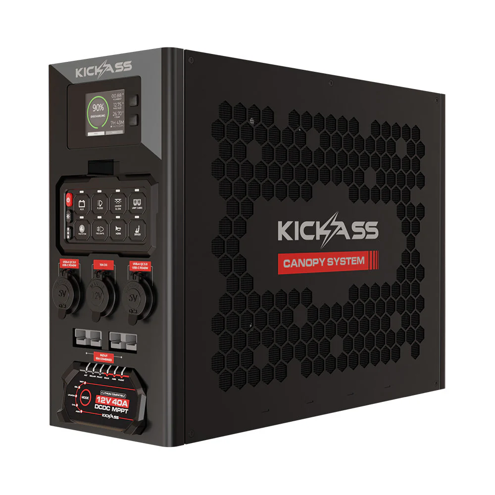 Engineered for seamless pairing with KickAss Smart Series and KickAss Ultra-X LiFePO₄ batteries| the updated Canopy Power System delivers maximum compatibility| safety| and efficiency. Select the KickAss lithium battery that suits your build and enjoy a complete| modernised off-grid power solution.