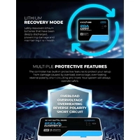 The charging settings can be customised within the user-friendly app. Choose between battery types| and adjust parameters such as boost charge voltage| float voltage| boost charge recovery voltage| and auto temperature compensation.