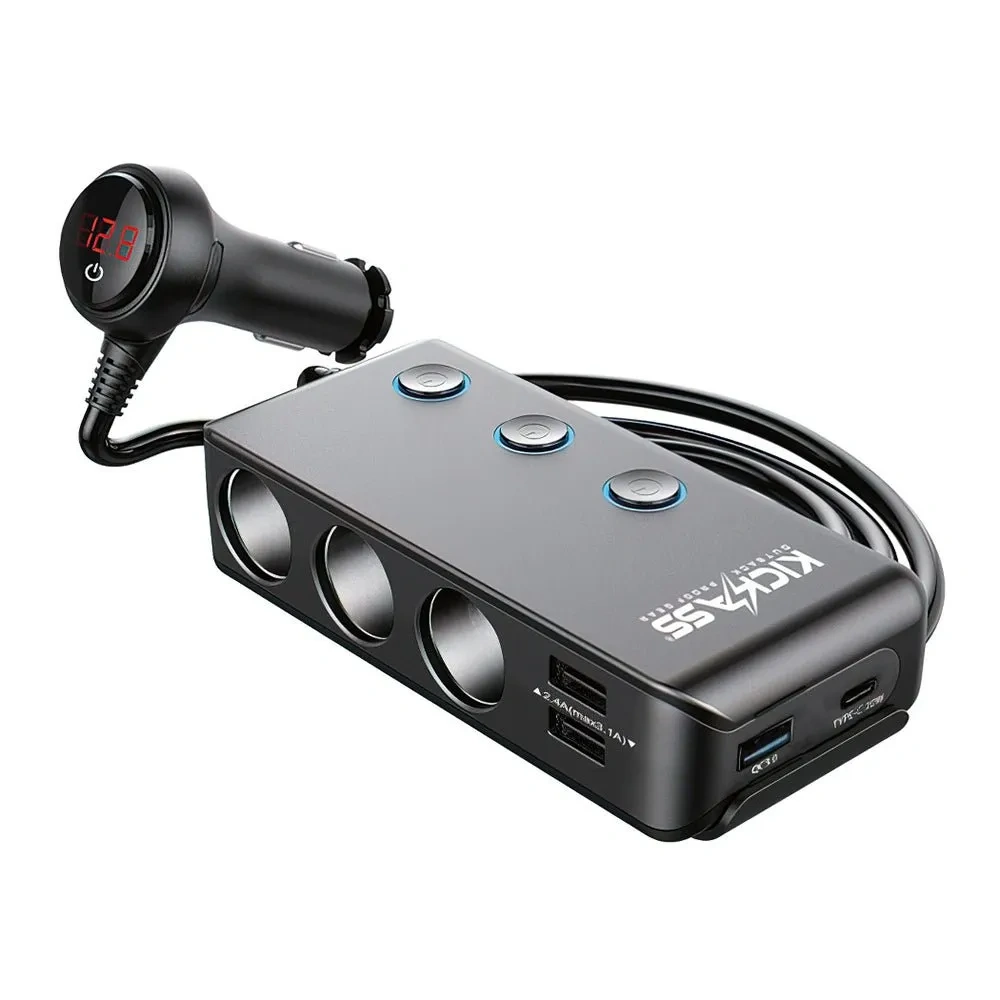 This handy gadget allows you to power up to 3 of your 12/24V devices at once through your cigarette socket. Perfect for phones| tablets and tech.