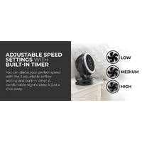 You can dial in your perfect speed with the 3 adjustable airflow settings and built-in timer. A comfortable night's sleep is just a click away.