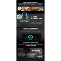 We’ve removed the guesswork – the KickAss Quickfire Electric BBQ is compatible with any KickAss inverter of 1000W or above. It's also the only grill in the world that will work on a 700W power station