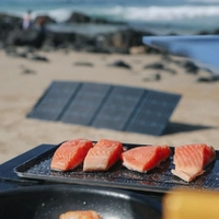 The world-first low power| high heat technology means the BBQ will maintain a high cooking heat while drawing only 600W or less. Once the BBQ reaches 240⁰C| it will maintain the temperature but reduce the power draw| so you don’t have to worry about draining your battery as you cook.