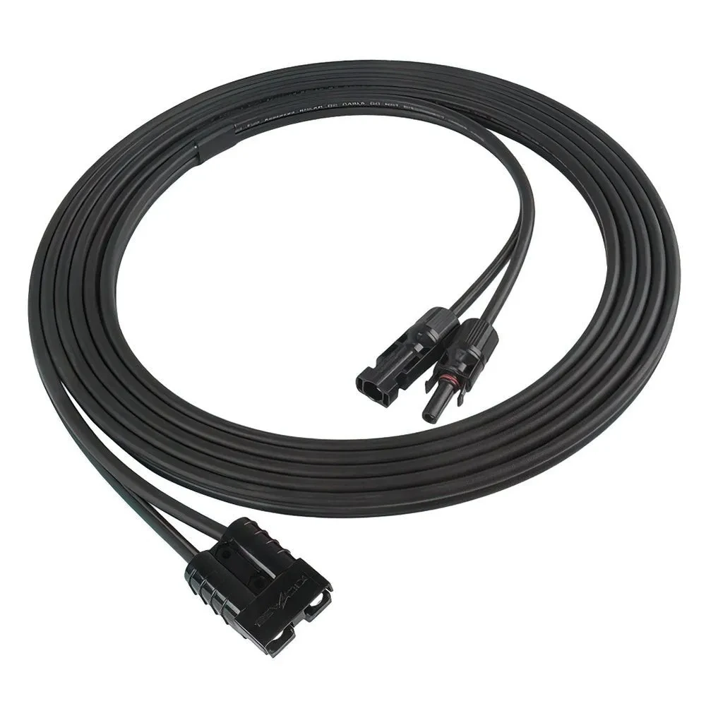 Makes installing solar panels a breeze. Specially engineered to be paired with our KickAss DC/DC Charger and KickAss 170W| 250W| or 350W Fixed Glass Solar Panels| this extension cable is completely plug & play. MC4 compatible. High Quality Extension Cable Heavy Duty Twin Core 10B&S Cable Pre-Crimped Anderson Terminals Plug & Play Setup MC4 Compatible Description Heavy Duty Twin Core 10B&S Cable Individually insulated and encased in a smooth PVC outer| providing added strength. Pre-Crimped Anderson Terminals for Ease of Install Setting up your solar has never been easier with the KickAss Solar Panel PV to Anderson Solar 5M Extension Cable. It can be plugged straight into your KickAss DCDC charger on your battery box| control hub| or directly into your MPPT/PWM solar controller. MC4 compatible.
