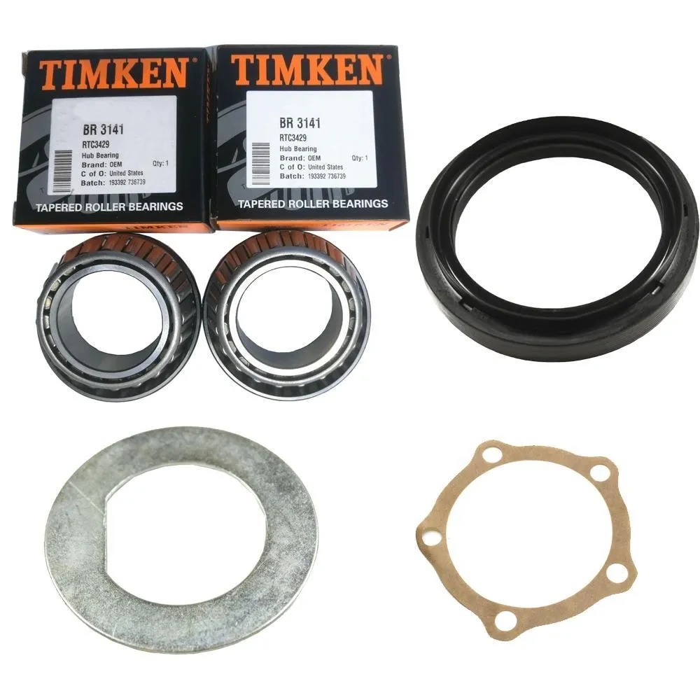 This kit includes two new timken bearings| a new lock washer and flange gasket and a Corteco branded hub seal.