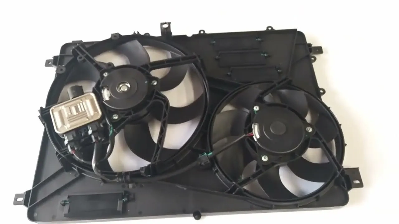 Engine cooling fan with motor and control module under part number LR011905. For models using the 2.2 CRDI and 3.2 litre 6 cylinder MPI engines.