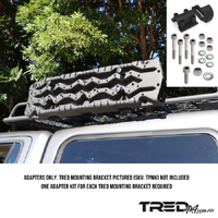 The TRED Mounting Bracket Adapter Kit 02 has been specifically developed to be used in conjunction with the TRED Mounting Baseplate* (SKU: TPMP01*) for side mounting of recovery boards on a roof rack where there is 25mm upper tube rail and 35mm bottom base rail tubing. Designed to work with a centre to centre rail measurement of approximately 115mm to 160mm.