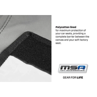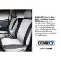 MSA 4X4 have created a canvas seat cover that is durable enough to withstand life’s adventures| but not too stiff that its uncomfortable for the occupants.
