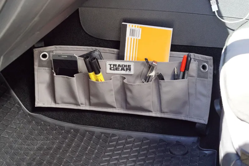 Small Barrier Organiser has 6 small pockets and 1 large pocket. Perfect for items that can just be thrown in together. Made from extremely heavy duty 14oz canvas with multiple velcro tabs and double-sided velcro strips to attach to different applications!