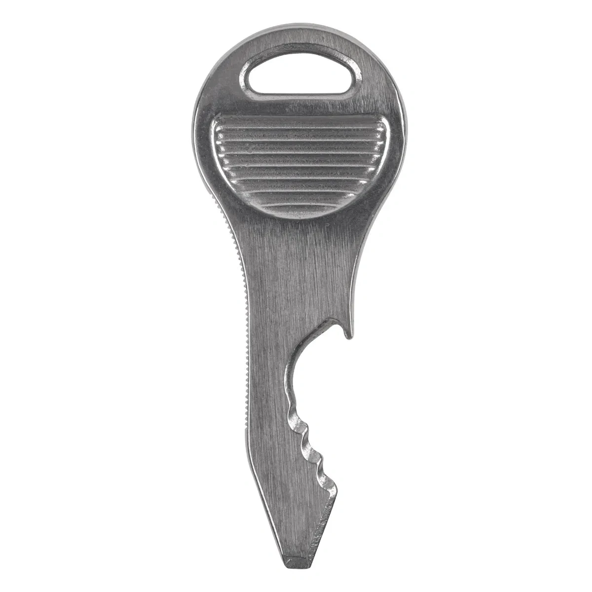 Features the following tools: scoring point| bottle opener| file| serrated edge| and slotted or #2 phillips driver