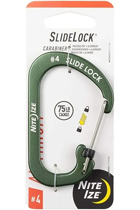 Following our mantra that no product is too small or basic to be improved| we have once again brought Nite Ize innovation to the traditional carabiner. This lightweight| colorful aluminum carabiner ditches the traditional bulky tubular construction for a cross sectioned| rectangular body that's low profile and slim to feed more easily through small openings and rests flat in pockets. It also features our innovative slide to lock design that securely locks the gate with a simple push and slide movement| and unlocks when you want just as easily. These are available in three sizes: #4 (perfect for attaching to a belt loop or backpack to carry larger items)| #3| and #2 (both are great for carrying smaller items like keys| and for attaching to zipper pulls).