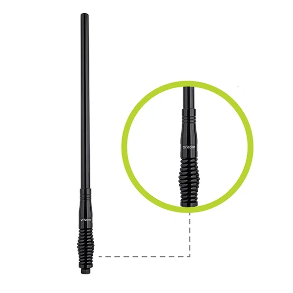 The ANU850 is a 3dBi UHF CB Antenna with fibreglass pole and heavy duty barrel spring base.