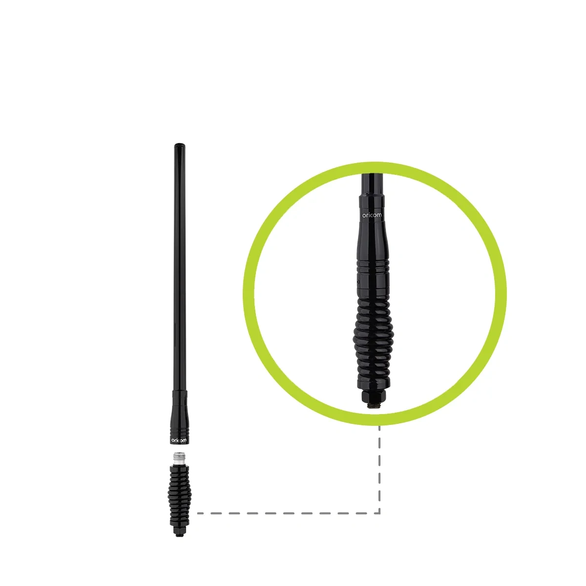 The ANC670 is a 4G LTE Multi-band Cellular Antenna with fibreglass pole and heavy duty barrel spring base.