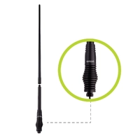 The Oricom ANU1200 All Terrain Antenna is our most popular innovation in the range of heavy duty and purpose built UHF CB Antennas. This super convenient pack includes a 3dBi short antenna including heavy duty large barrel spring base with elevated feed. The pack also includes a simple to install extension fibreglass pole to convert the 3dBi base to a 6.5dBi antenna. Essentially you have the best of two different gain options| in one convenient pack. Simply add the larger pole when you are travelling on flat| open terrain. Alternatively| take the pole off and the 3dBi is perfectly suited to hilly or more mountainous terrain.