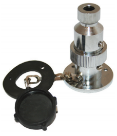 Chrome-plated brass screw apart electrical plug & sockets with a base seal| retainer chain| and socket cover.