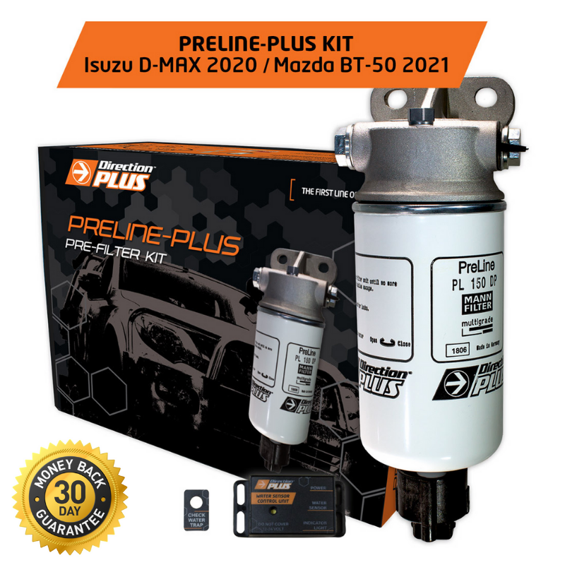 Direction-Plus™ PreLine-Plus PL645DPK is an innovative pre-filter system for diesel fuel that suits Isuzu D-MAX 2020 and Mazda BT-50 2021. The pre line-Plus pre-filter system is designed specifically to cope with extreme weather conditions and poor fuel quality ensuring a high degree of water separation and particle pre-separation.