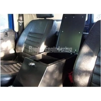 - Features include: Full overlapping steel lid with strong button press lock (cannot be forced round like a swing type lock); Large capacity| made to fit a Defender perfectly utilising the space all the way back to the rear bulkhead; Soft pad on the full length of the lid ergonomically designed as an arm rest; Full opening lid so it can be thrown back without damaging the hinges (lid comes to rest on bulkhead); Removable interior tray ideal for wallet| passports| sun glasses etc. ( a second tray can be fitted as an optional extra);