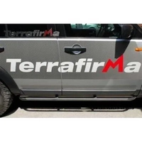 In most cases Terrafirma rock sliders are made from sturdy steel box section with or without the optional steel tube outrigger 'tree bars' that keep the bodywork away from immovable objects just waiting to damage your doors. Tree bars can also serve as a useful step for both entering the vehicle and accessing the roof rack. For Discovery 3| Terrafirm rock sliders are made from 6mm alloy carefully folded to match the shape of the sill with optional tubular tree bars which also double as effective side steps for easier access.