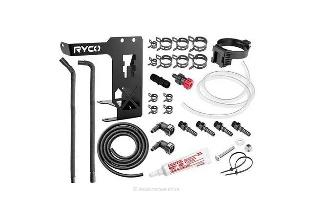 - Component kit designed for the dual or single installation of Ryco Fuel Water Separator and Ryco Crankcase assemblies