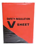 Regulation size orange PVC sheet with large black "V". Four corner eyelets complete with rope lanyards.