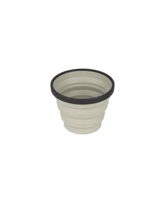 The X-Mug is a collapsible mug that is also calibrated as a measuring cup. The flexible silicone sides fold flat making this a small compact disc sized dinnerware piece that nests neatly with other X-Series dinnerware and X-Pots. The rigid ring within the rim keeps it sturdy and easy to drink out of.