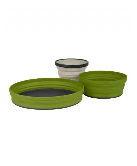 Our comprehensive X-Set 3-Piece includes one X-Bowl| one X-Plate and one large volume X-Mug. This durable| compact and space-saving dinnerware set comes in a lightweight zippered Ultra-Sil storage pouch.