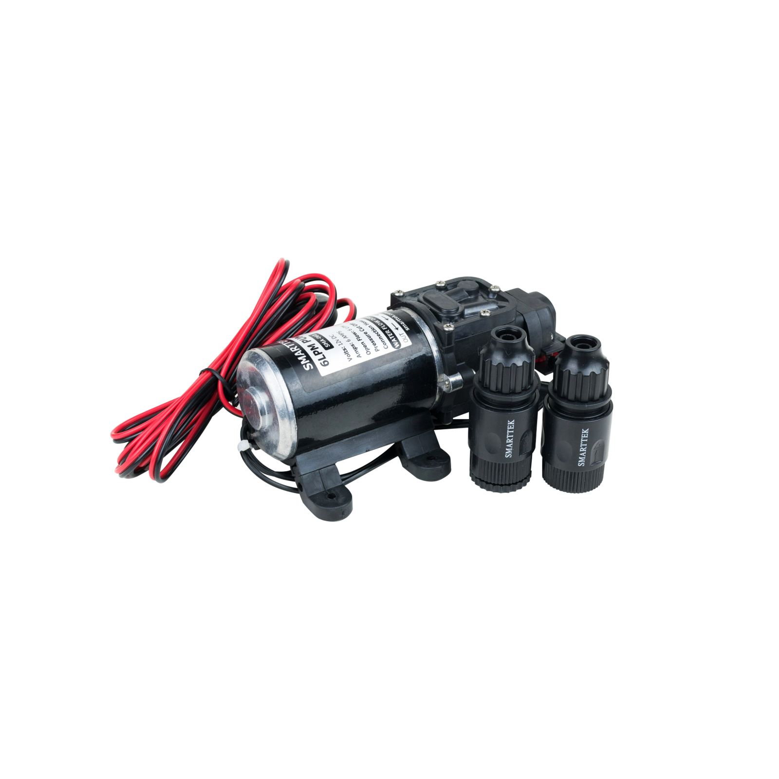 Complete with Smarttek water hose quick connects and pump power cable with alligator clips.