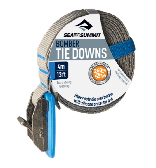 This general purpose| heavy duty tie down is suitable for all types of canoes| kayaks| surf boards| skis/snowboards or the excess trailer load. The zinc alloy die cast buckle features a rubber protector pad and the 25mm polypropylene webbing is UV protected. Handy| color-coordinated elasticised webbing retainer keeps the tie downs neatly coiled when not in use.