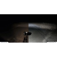 The above night shot characterizes the performance increase over stock perfectly. Powered by 5700K high-performance LED's which bounce off of a hooded reflector to form a very flat and ultra-wide light beam. The difference in brightness is extraordinary.