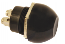 Compact pushbutton momentary switch with rubber cap and chrome plated bezel and contacts. Ideal horn switch.