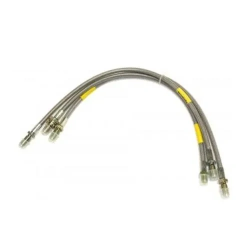 Set of new Stainless Steel +50mm (longer length) Braided Brake Hoses to suit Land Rover Defender 1999-04 without ABS. They are a quality Terrafirma Part.