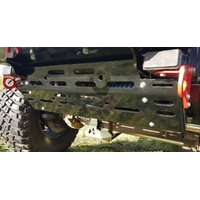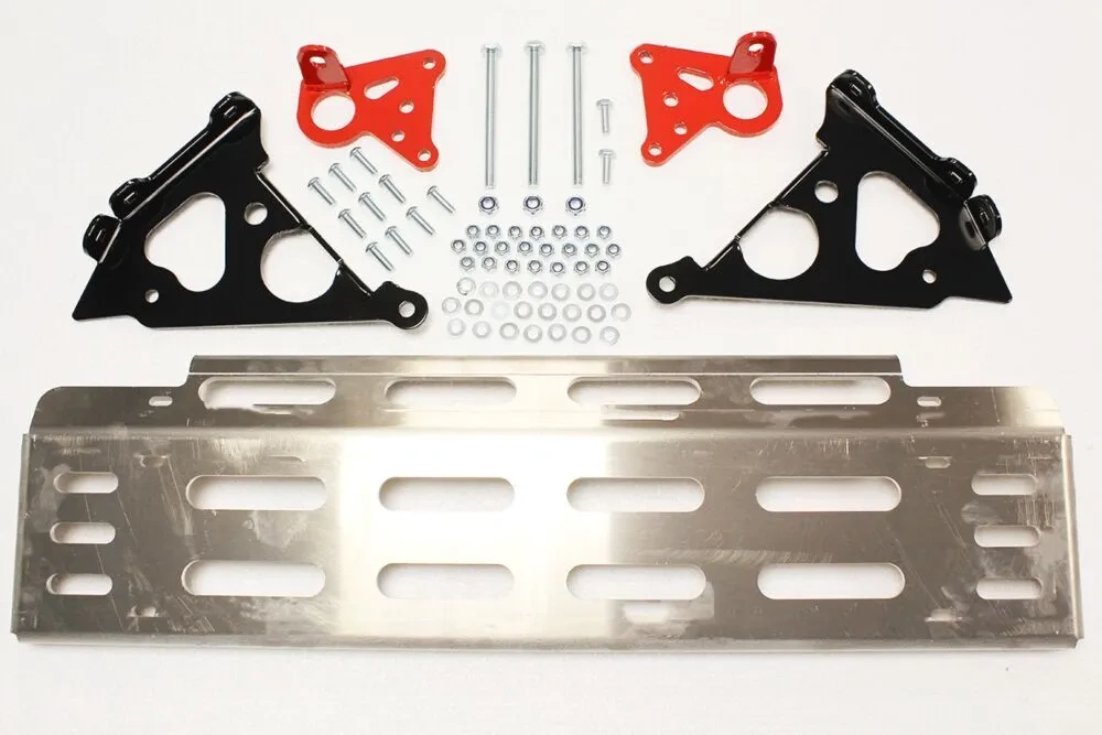 This steering guard is made from 6mm perforated alloy plate| with 6mm black powder coated steel side plates. With the addition of bright red| 8mm steel recovery points| this steering guard does it all! Protect the vital and vulnerable front end components of your Defender now!