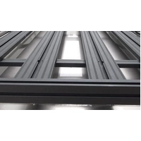 The rack is made from aluminium alloy and is fully welded giving it massive strength and rigidity. The slats on the rack are 90mm wide and run length ways down the rack| each slat has and extrusion running down the middle that can take an M8 bolt head for attaching accessories.