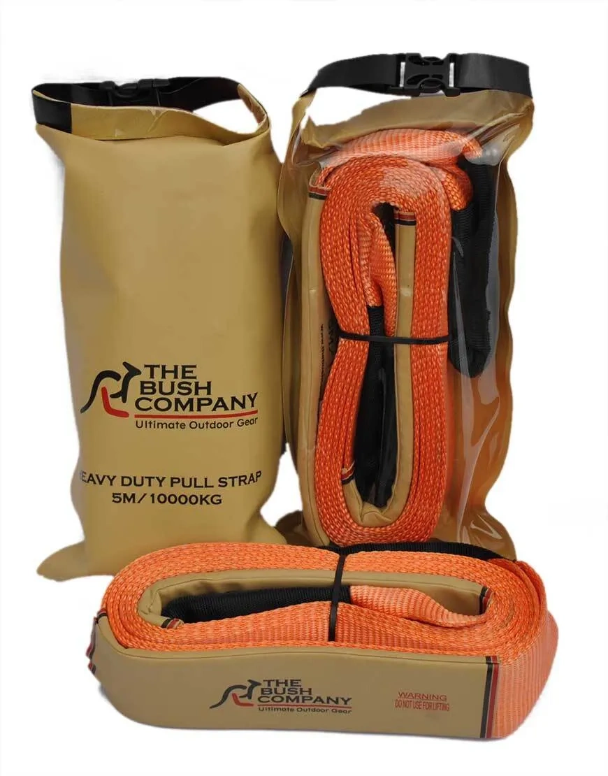 Designed to The Bush Company specification| this Heavy Duty Pull/Extension Strap 5m 10t is the perfect strap to extend your winch'ss cable to the required anchor/fixing point or to use as a non-kinetic pull strap to extend a kinetic strap. The strap also features a seam protection grip pad and heavy-duty reinforced end loops allow for more strength and operator ease of use. Specifications Width ‚ú 80mm Length -5m Max breaking strength -10|000kg Reinforced End Loops -Yes Grip and Seam Protection Pad -Yes In Sealed Dry Bag ‚ú Yes