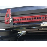 The Hi-Lift Jack Mount Bracket has been designed specifically to suit the AX27 Clamshell Rooftop Tent. The bracket mounts to the two ÀúEzi-Slot's channels in the base section of the tent frame| with one part of the bracket for the foot of the jack and the other for the head. The Hi-Lift Jack can be mounted with the foot either pointing up or down depending on your vehicle configuration.